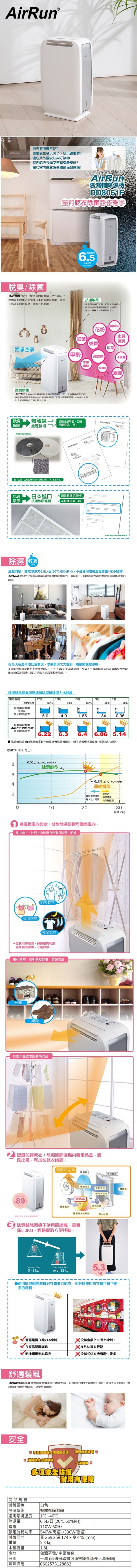 AirRun 日本新科技6.5公升暖風除濕輪除濕機 DD8061F