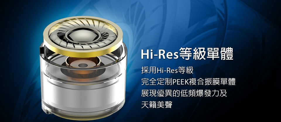 ■ 採用日本Hi-Res認證等級複合振膜單體,低頻有力、中高頻清晰