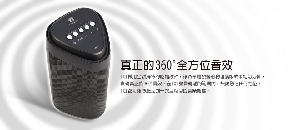 Life n Soul TX1真無線立體聲藍牙喇叭,360°全方位高音質傳導,不論在哪個方向都能享受美聲,單個使用聽覺好享受,2個串聯使用更可加倍感受絕妙立體聲效!