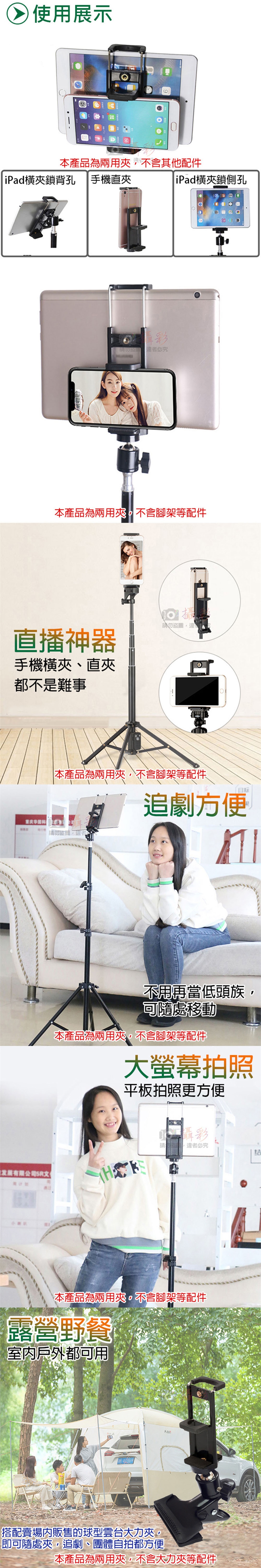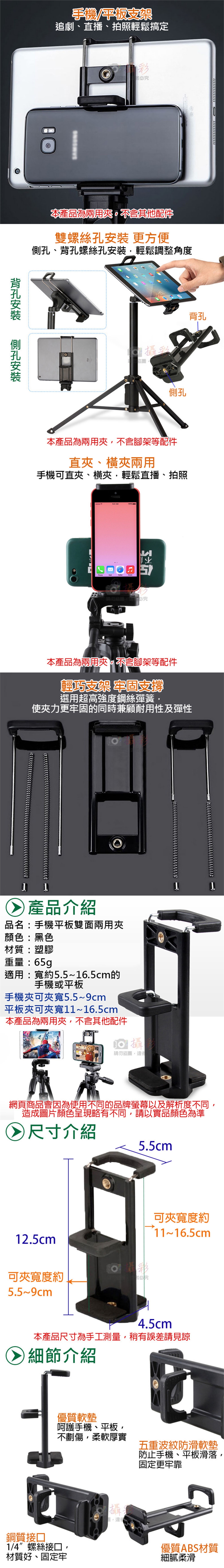 ◎雙1/4"螺絲孔,可搭配腳架、球型雲台大力夾、自拍棒等配件