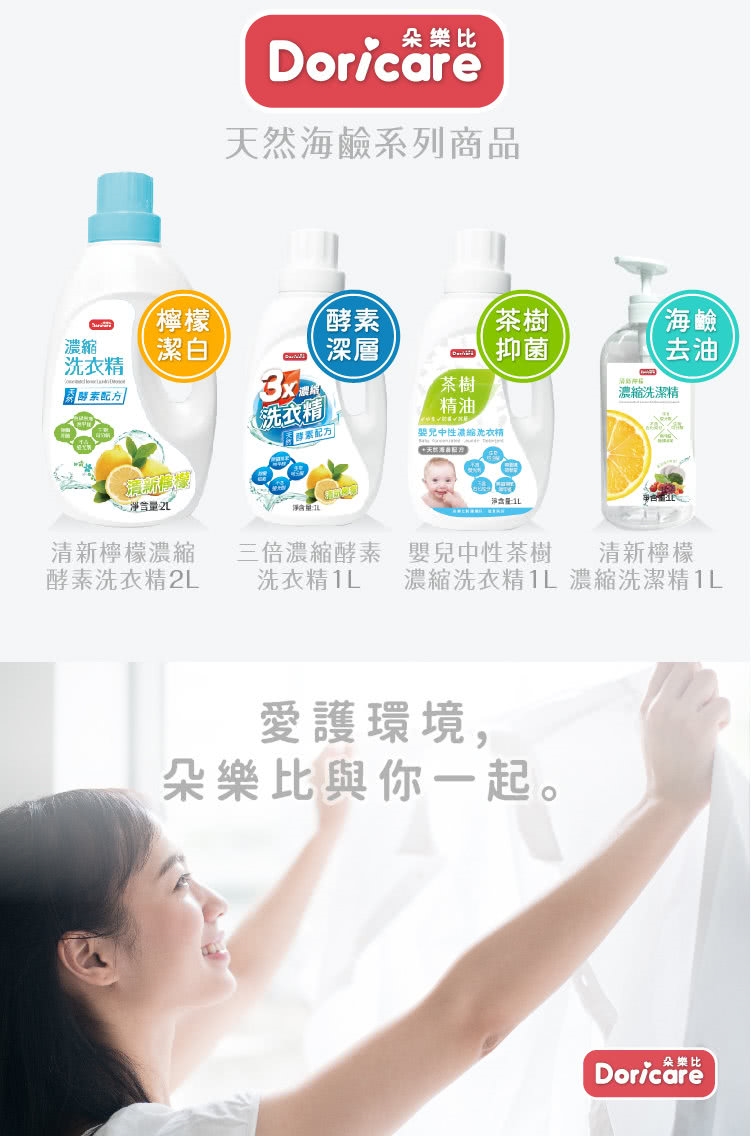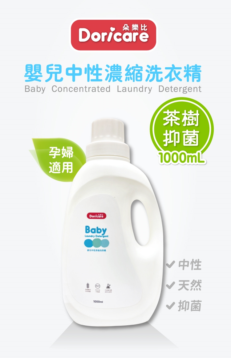 【Doricare朵樂比】嬰兒中性茶樹濃縮洗衣精X2瓶+奶瓶蔬果洗劑X1瓶