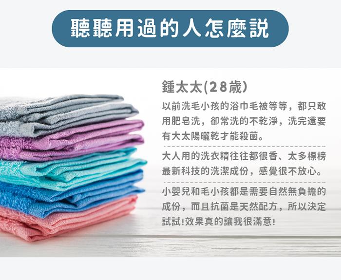 產品用途: 洗衣精用於清潔衣物、奶瓶蔬果洗劑用於清洗奶瓶