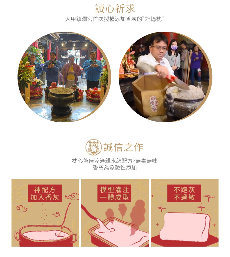 商品詳細介紹 體驗說明 不可體驗 使用方法說明 平安枕:透氣表布套可拆洗保養便利,洗滌後抗菌效果依舊持久 注意事項 平安枕※香灰入枕心-是在液體原料狀態時就混合加入了,採象徵性添加,不影響原本配方,因此不用擔心過敏或是否有氣味的問題。