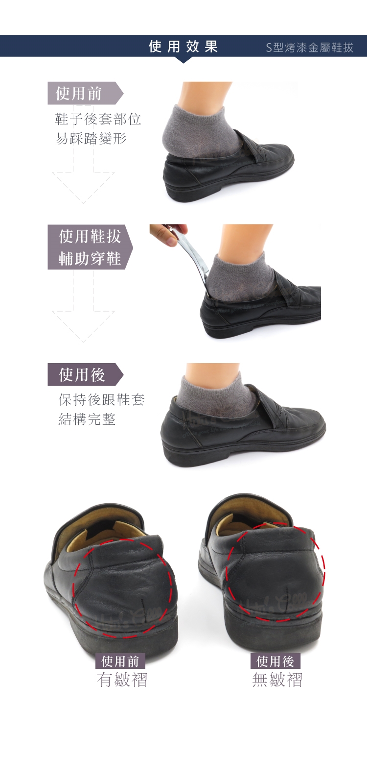 3.輕踩鞋拔,腳後跟順著鞋拔滑入鞋內