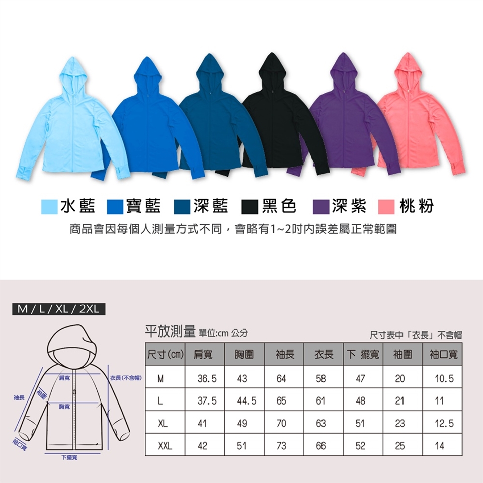 內容物為1件連帽防曬外套或1件吸排素色T恤