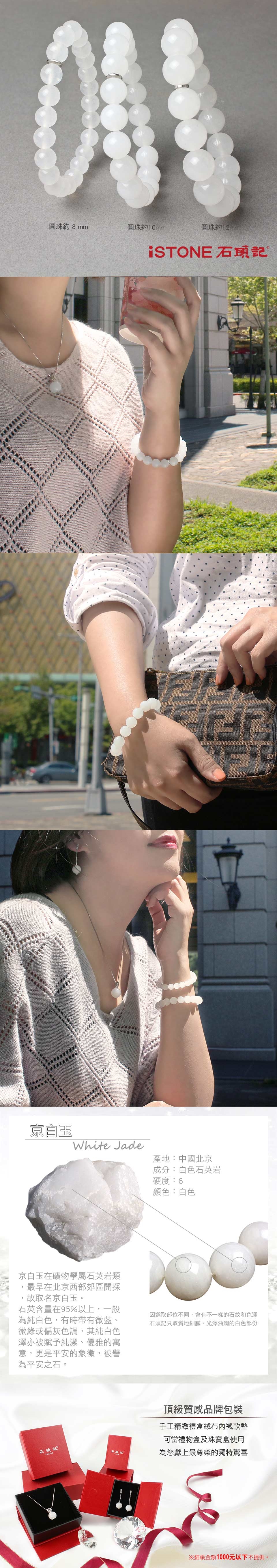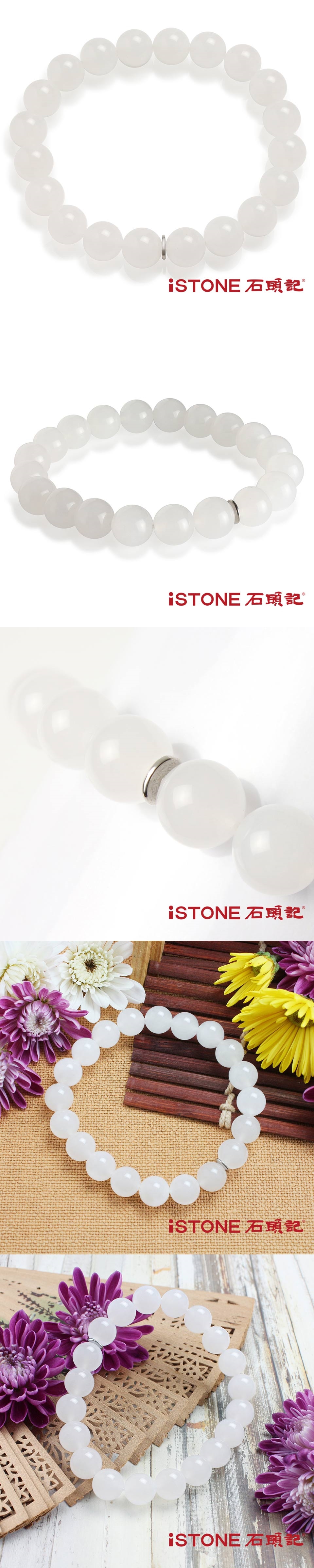 ◇每顆圓珠皆手工切割輔以精湛打磨,玉珠閃亮無比光華透亮,配以iSTONE品牌鋼飾,象徵守護、共生與淬煉,就是要為配戴者帶來好運、平安的守護能量,更凸顯出石頭記品牌手鍊與它牌手鍊的與眾不同。