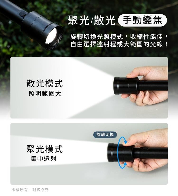 --手動旋轉變焦遠射,SOS閃燈緊急應變--