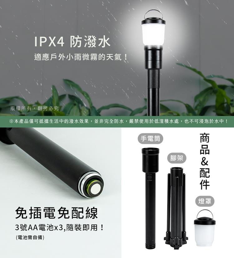 採用3號AA電池x3,一物多用,戶外照明一支就夠!