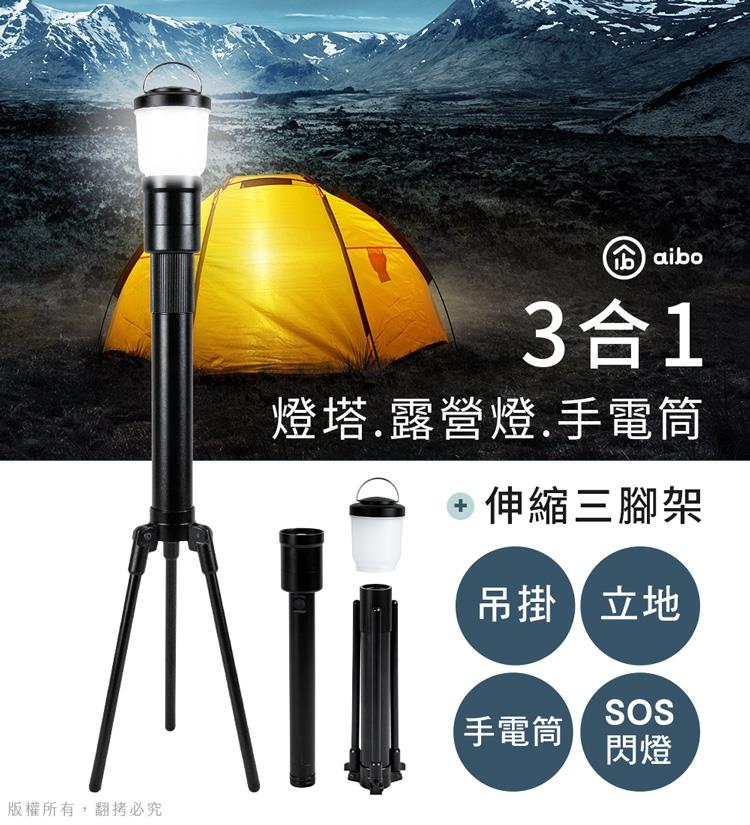 aibo 三合一 燈塔露營燈手電筒+伸縮三腳架LI-61(電池款)