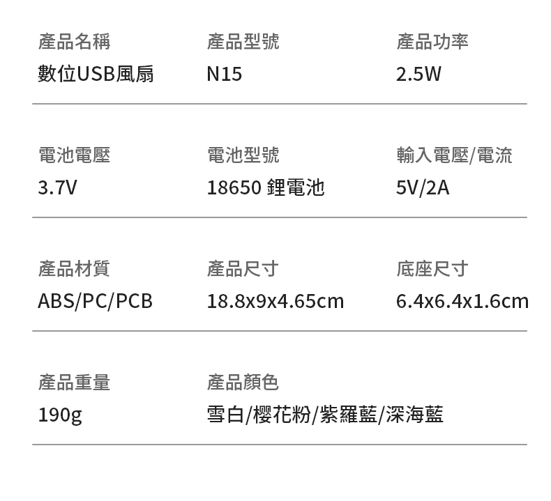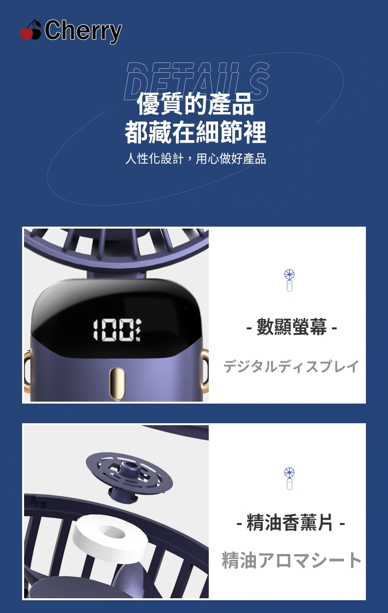 包裝清單:風扇+底座+充電線+說明書+電池+香薰片+掛繩