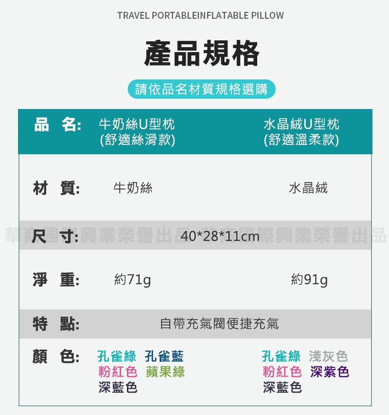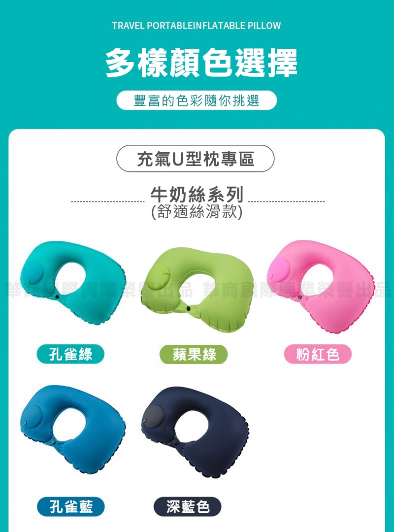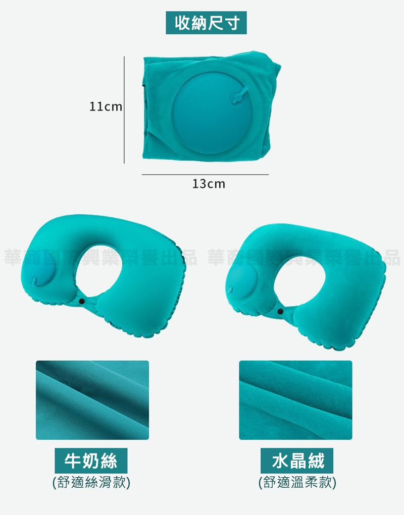 產品名稱:按壓充氣旅行枕-牛奶絲U型枕