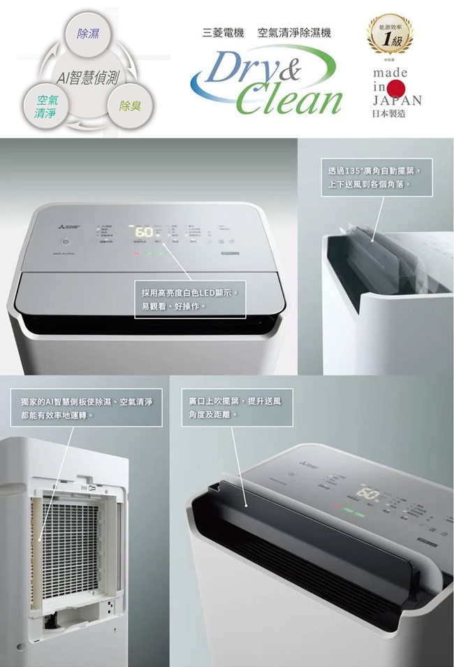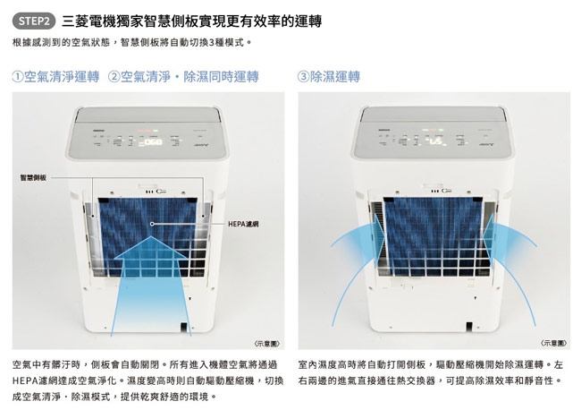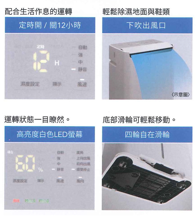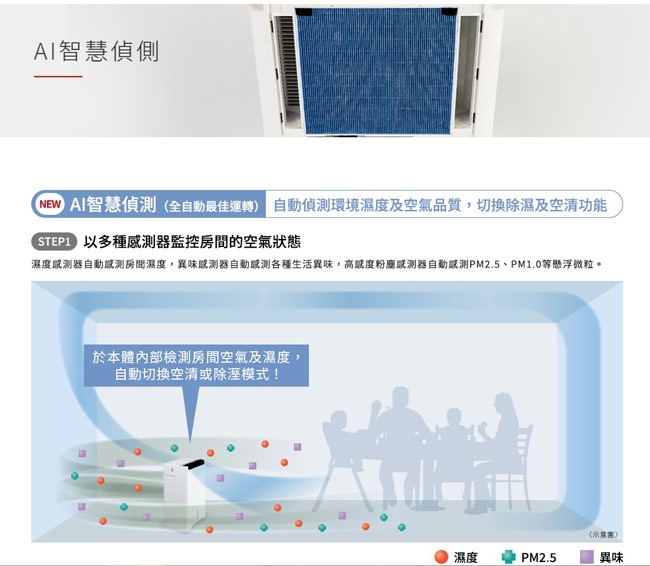 ◎空氣清淨、除臭、除溼三合一功能