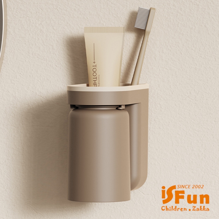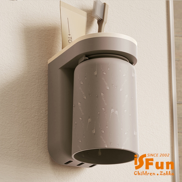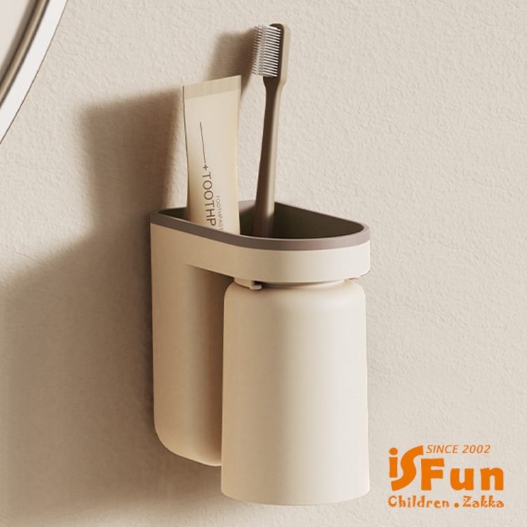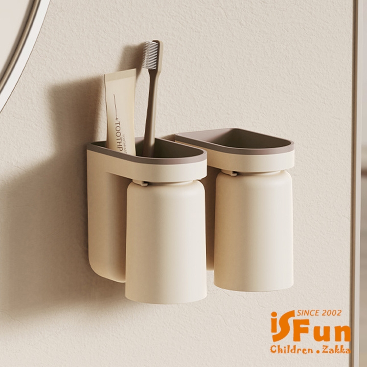 多功能衛浴收納漱口杯架組,使用倒掛式功能讓杯子瀝水,