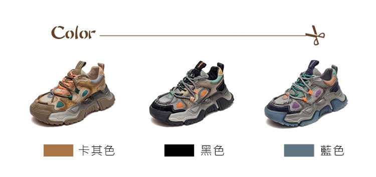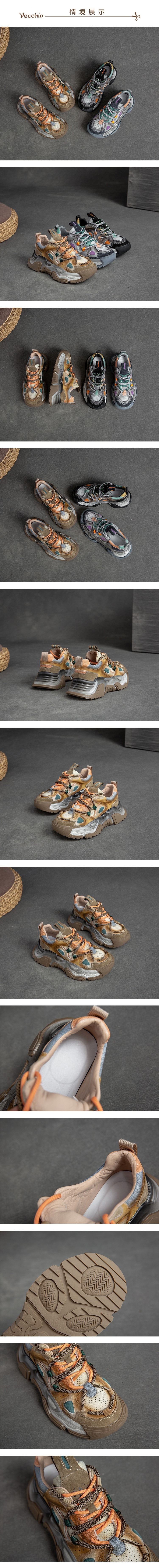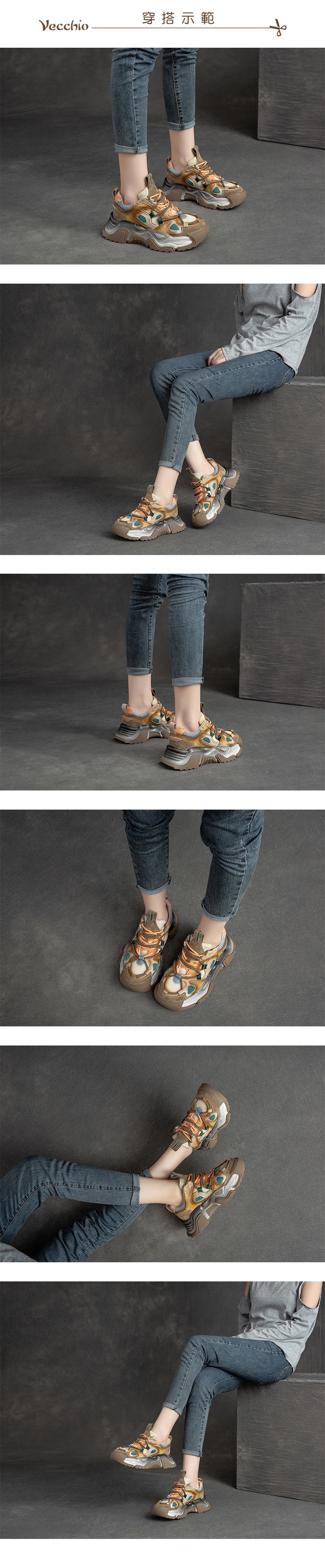【VECCHIO】老爹鞋 運動鞋/全真皮頭層牛皮寬楦繽紛網布拼接厚底個性老爹鞋 運動鞋 卡其