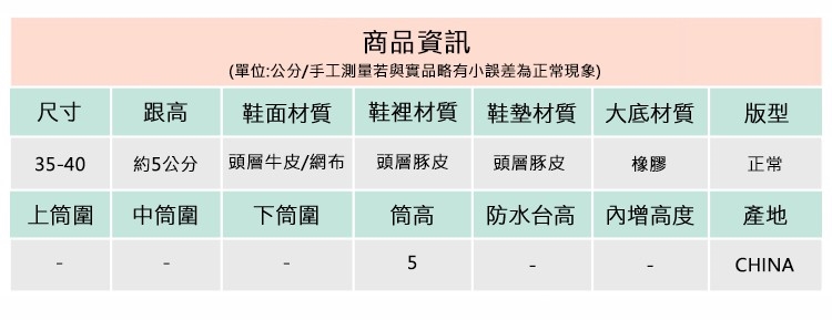 4. 鞋類商品建議交由專業之店家做保養清洗,請勿自行使用市面上之化學清潔品或保養液清潔。