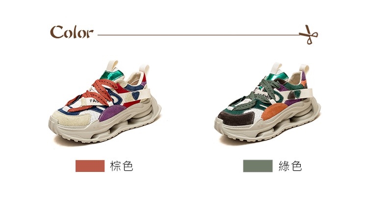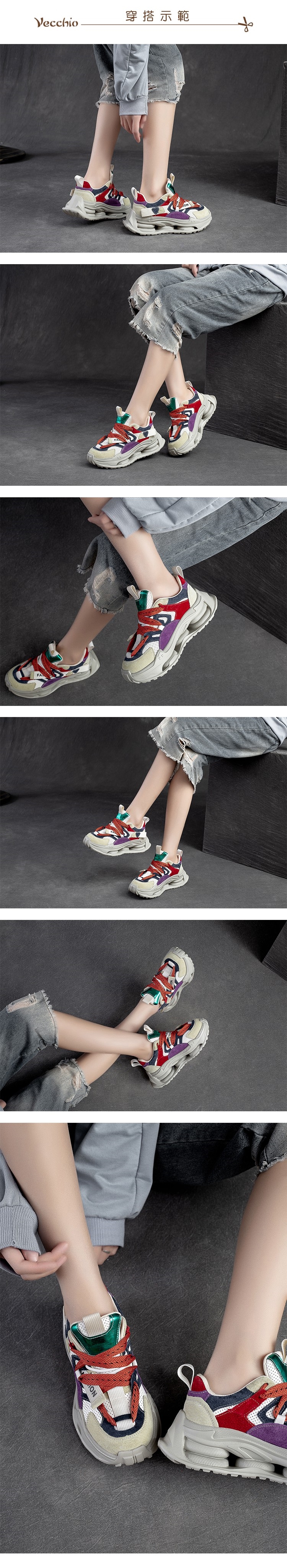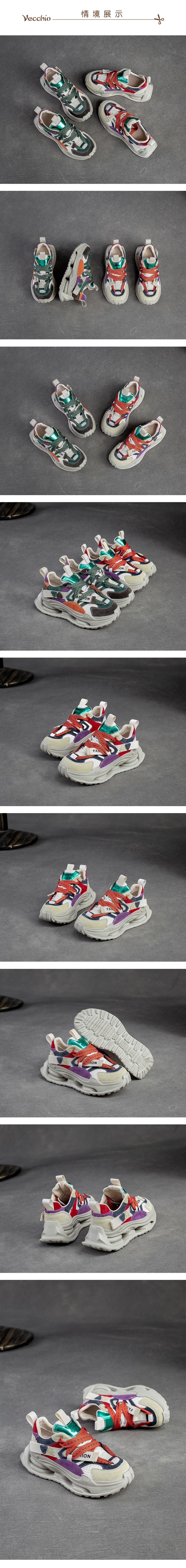 【VECCHIO】老爹鞋 厚底老爹鞋/全真皮頭層牛皮寬楦彈簧大底彩虹拼色造型厚底老爹鞋 棕