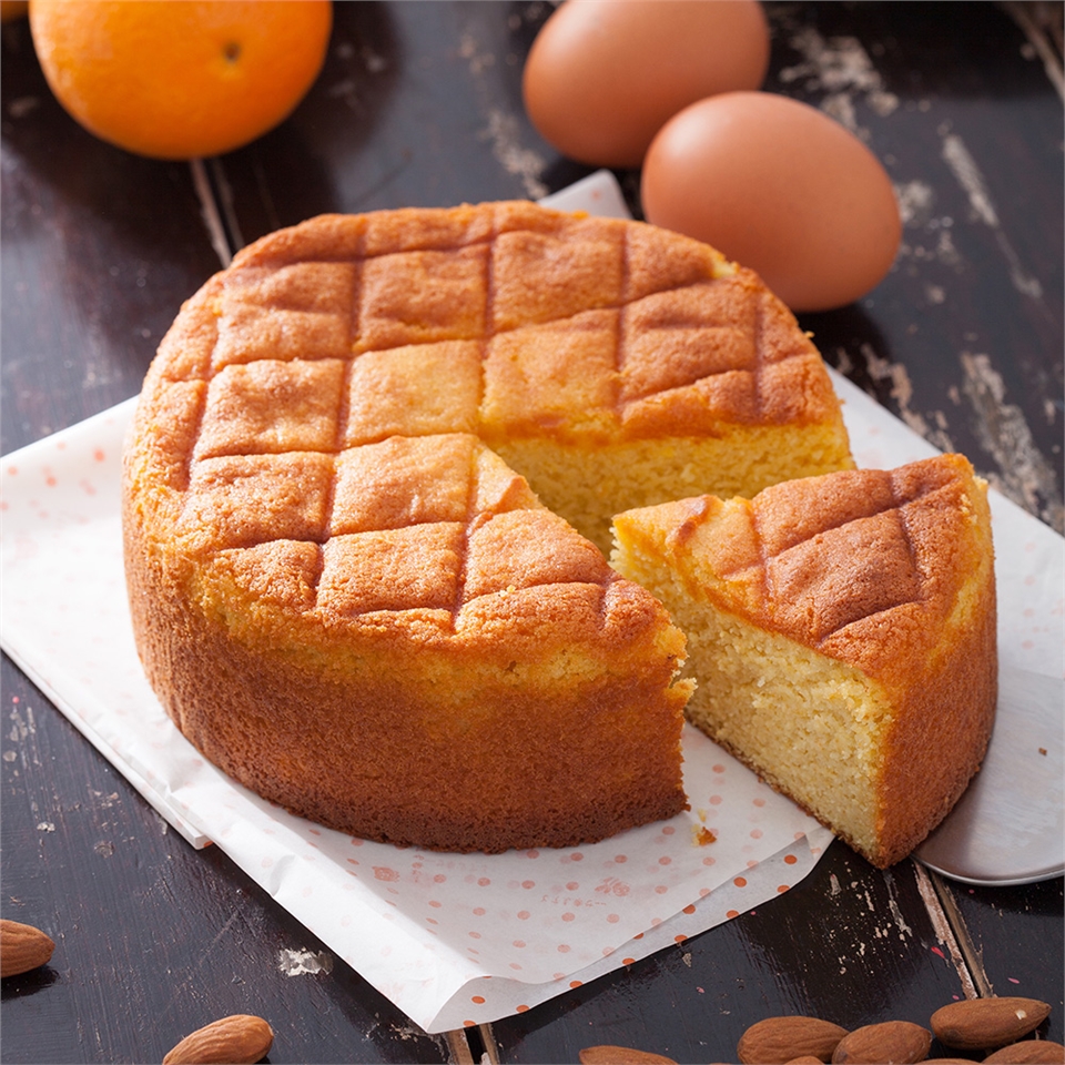 口感紮實,香氣十足的香橙杏仁蛋糕,以杏仁為主角的蛋糕,加上新鮮柳橙的香氣,