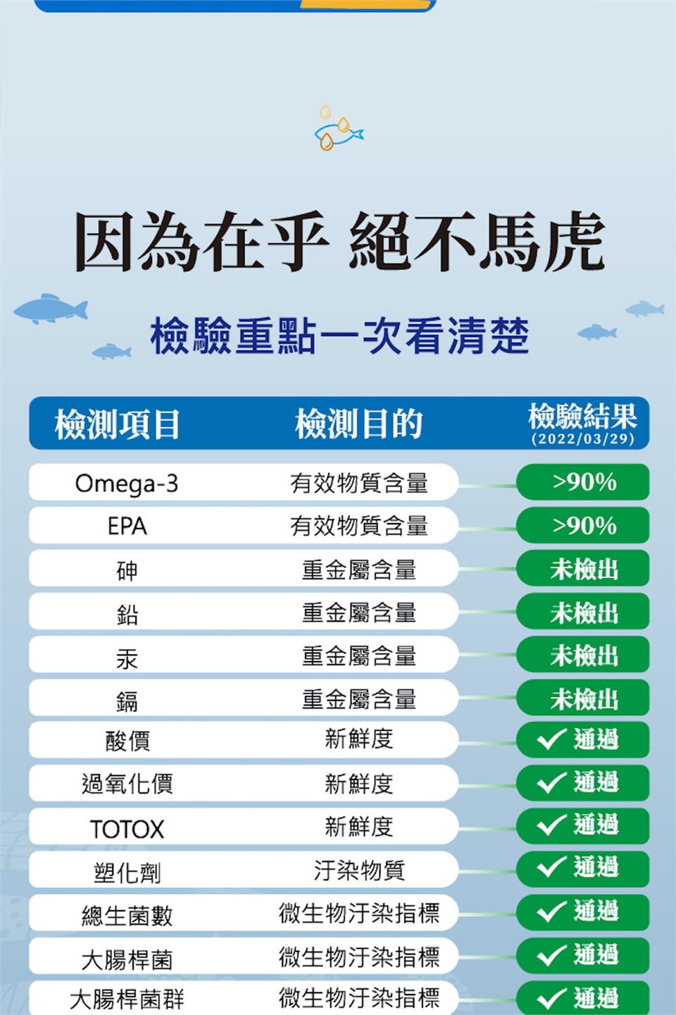 • 魚油新鮮度指標(酸價、過氧化價),數值越小越新鮮
