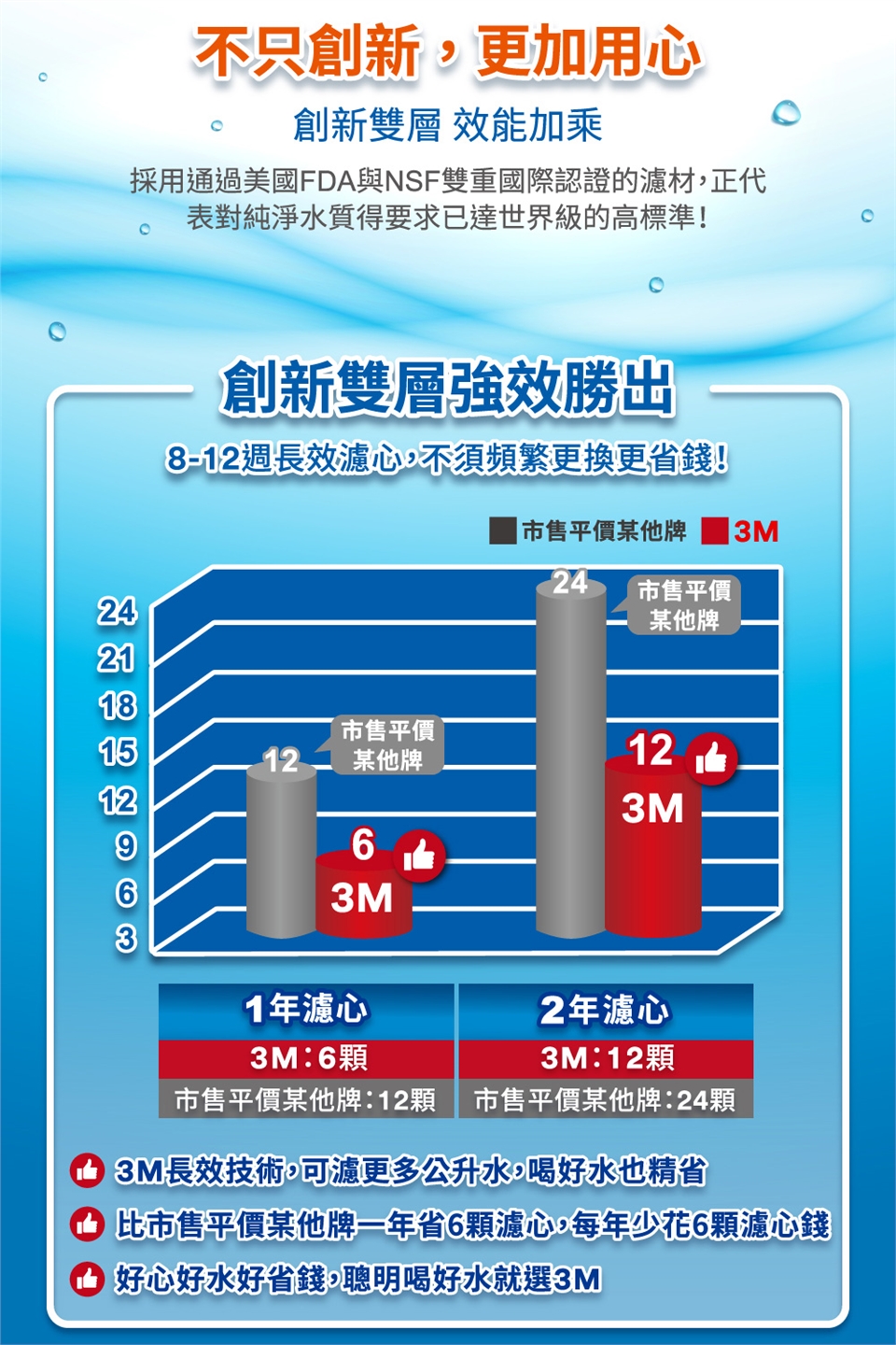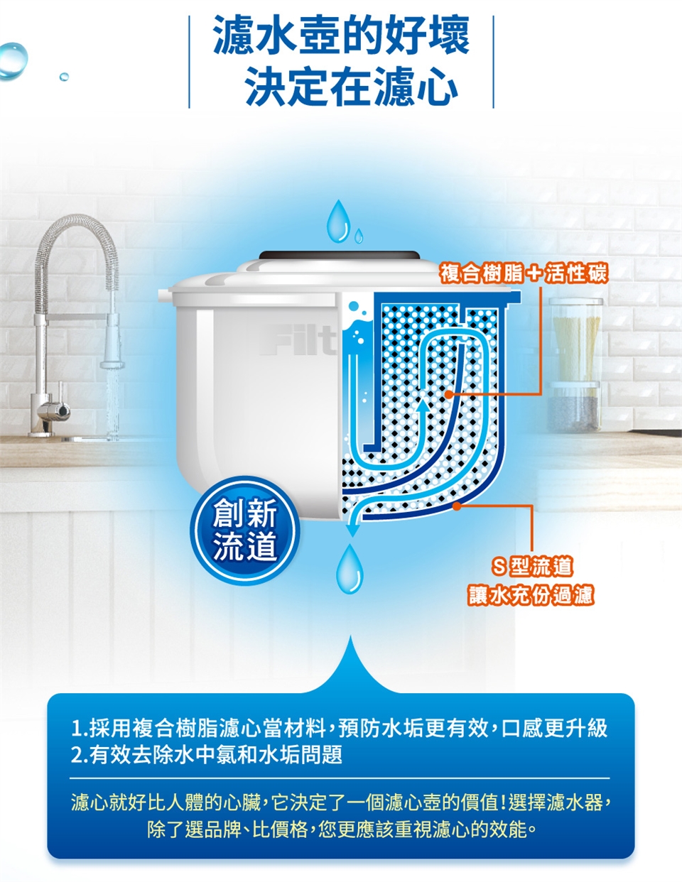 ◆創新雙層流道結構設計,過濾效果更加倍。