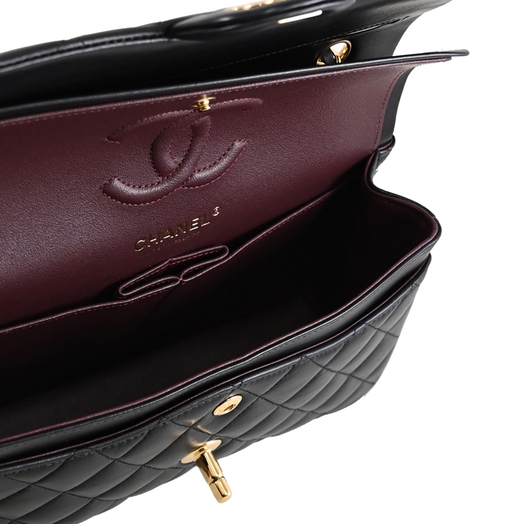CHANEL 官網熱賣COCO包,23CM尺寸,雙C LOGO飾搭配菱格紋小羊皮材質,轉釦翻蓋開口/內有4貼袋+1拉鍊袋/外1貼袋供收納,背帶可調節手提或斜背或側背變化,高貴大方,展現出女性魅力,延續貴族品味的氣息。