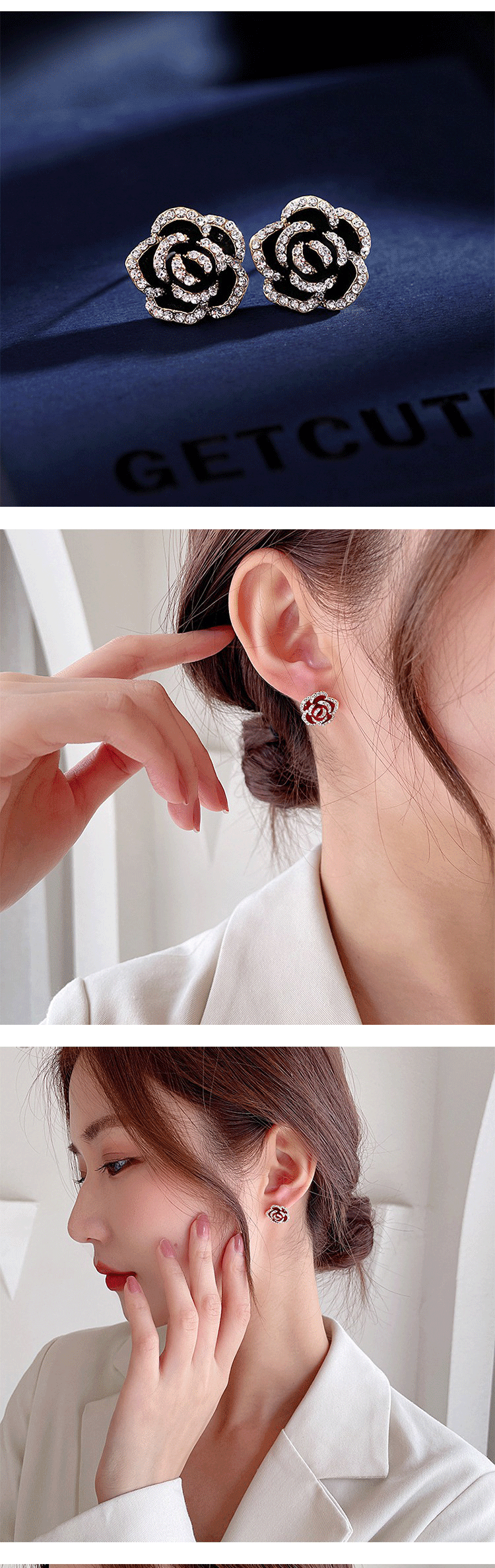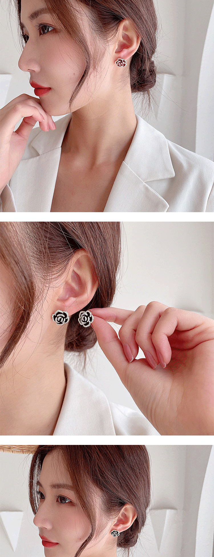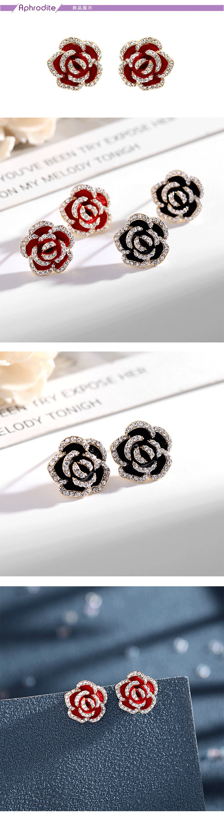 【愛芙晶鑽】S925銀針美鑽鑲嵌綴邊優雅玫瑰耳環 造型耳環 美鑽耳環 (2款任選)