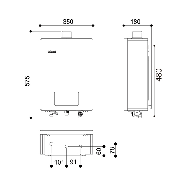 強制排氣熱水器安裝需有110V插座,安裝請先確認附近是否有插座,若長度不夠可使用延長線,原廠技師不會協助接電線、準備延長線