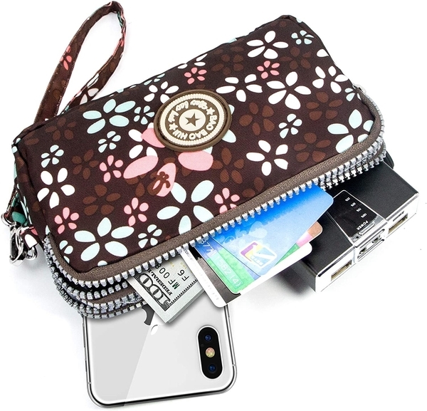 大容量:拉鍊封口有三個隔層,可容納您的手機、現金、信用卡包