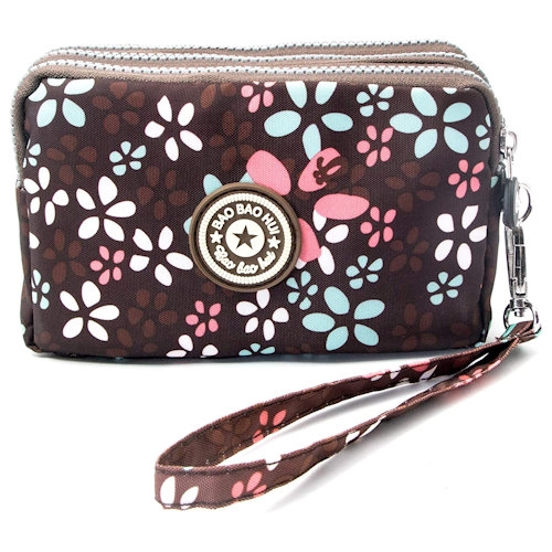 【Love 21】2023女時尚棕色系印花尼龍防水手拿包