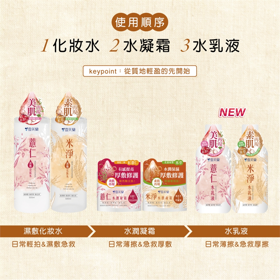 由純米萃取出的“米神經醯胺”鎖住肌膚水分;與NSF天然水源認證及豐富微量元素的“冰河泉水”保濕鎖水,浸潤肌膚,提高肌膚含水量。