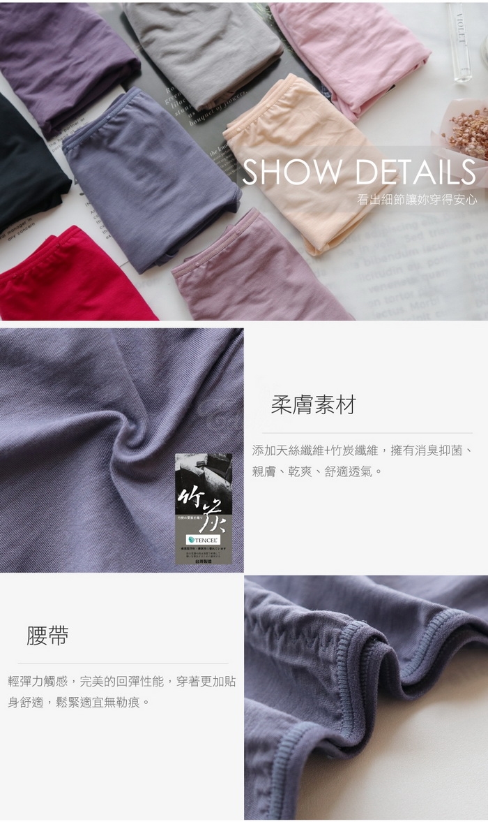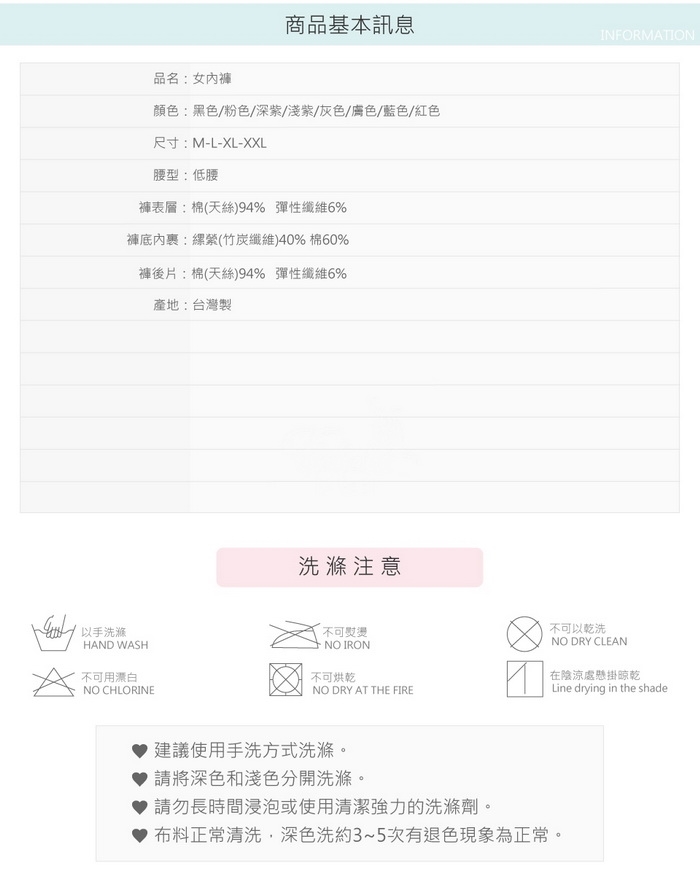 底部內襯採用竹炭紗,利用竹炭天然抑菌成分與透氣度達到保護女人私密處的效果!