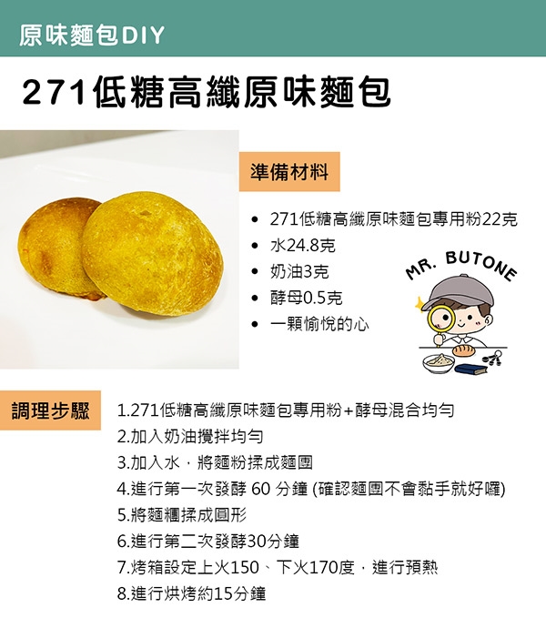 咘酮-271低糖高纖原味麵包專用粉-食譜與做法