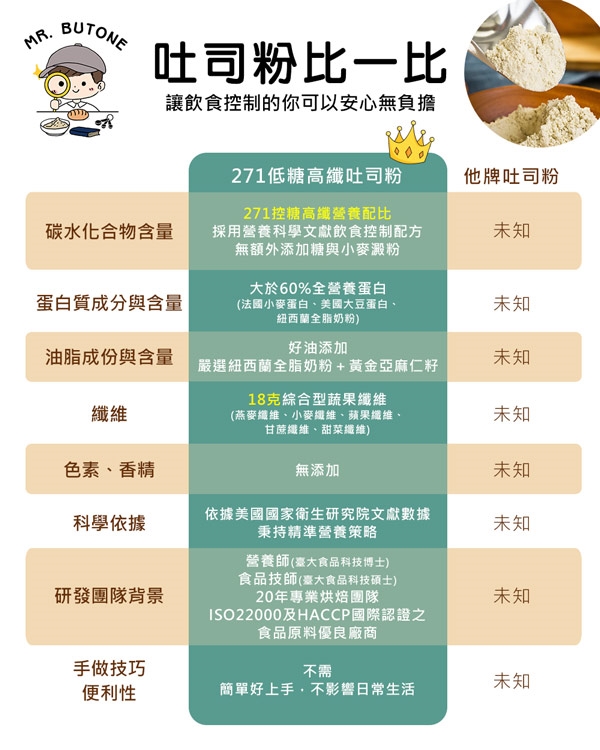 咘酮-271低糖高纖吐司粉-品牌堅持