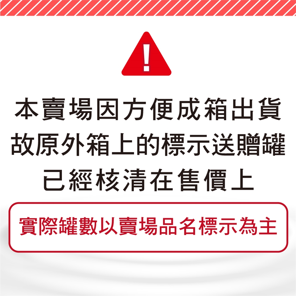 目前正值新舊包裝轉換期,新舊兩款隨機出貨,產品內容配方皆相同,敬請安心使用,如仍有疑慮可撥打罐身佳倍優0800客服專線確認。