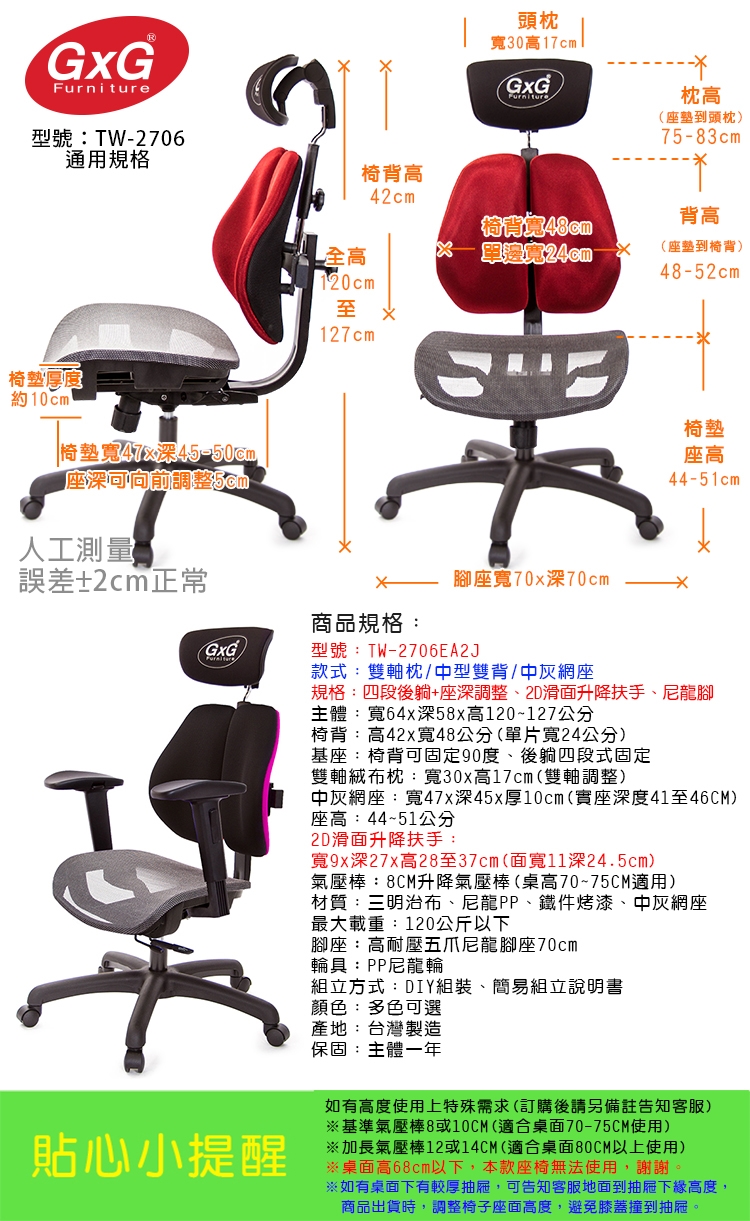 購買注意事項:本座椅高度,均以搭配標準桌高70~75CM使用。