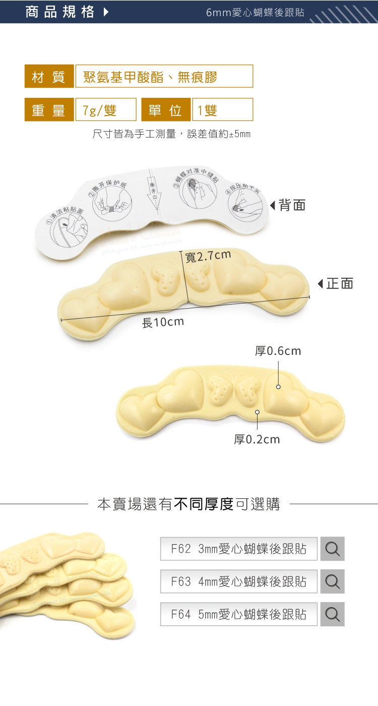 6mm愛心蝴蝶後跟貼功能: