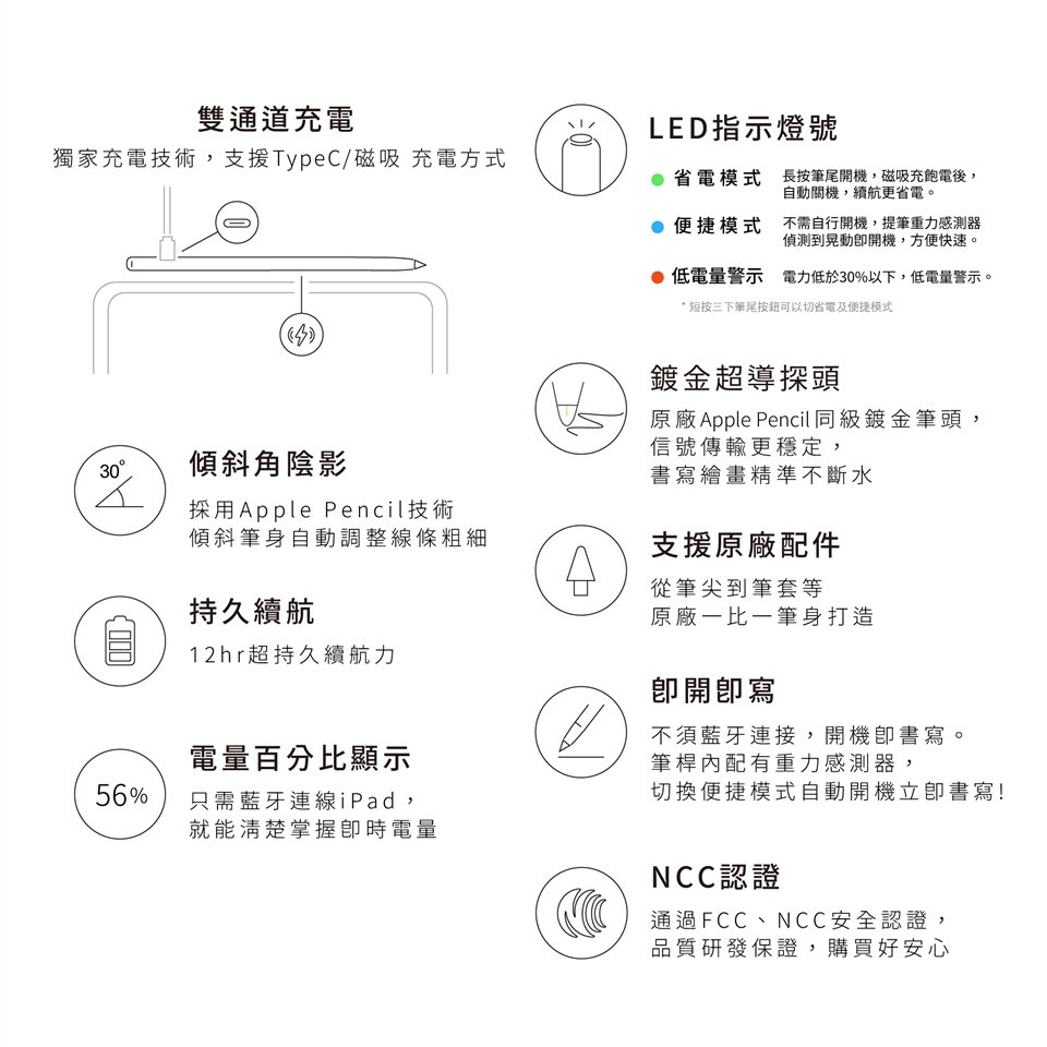 可替換筆尖x 1 枚 (可與Apple Pencil 1/2代互換)