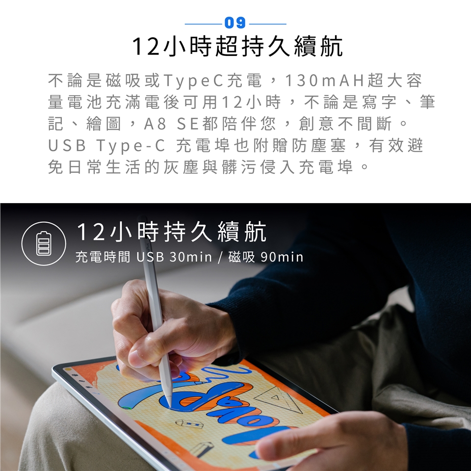 充電模式/時間:USB-C充電-30min / 磁吸充電-90min
