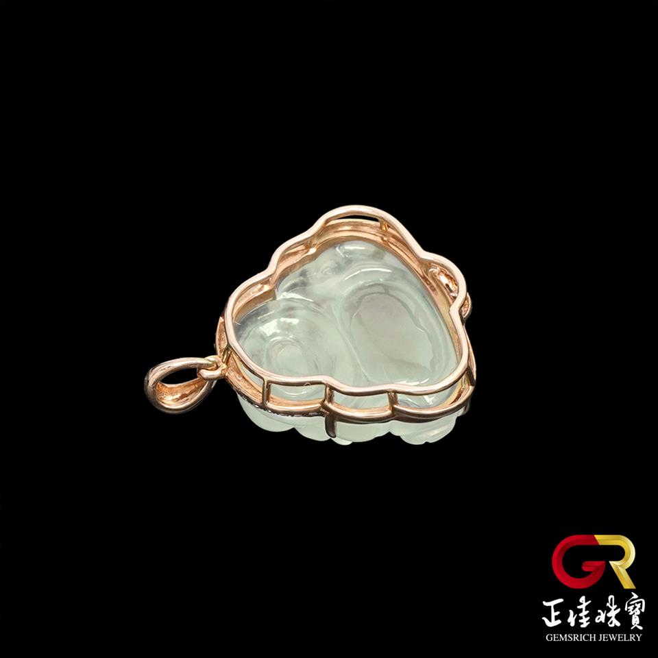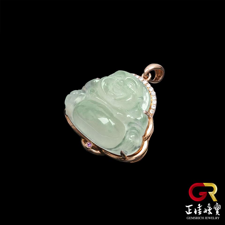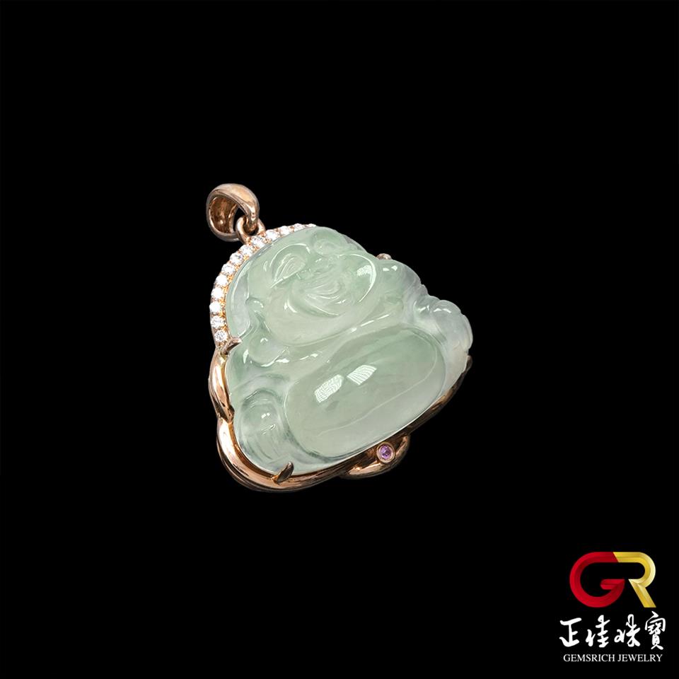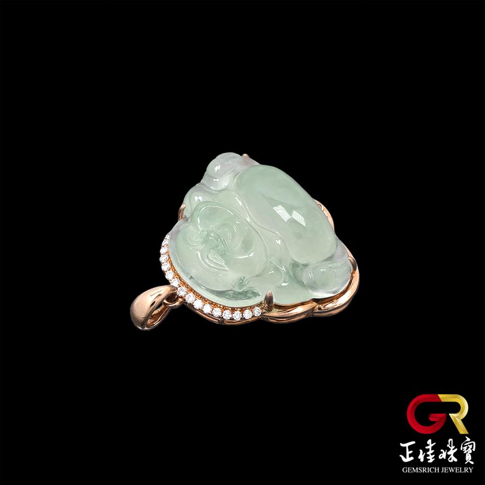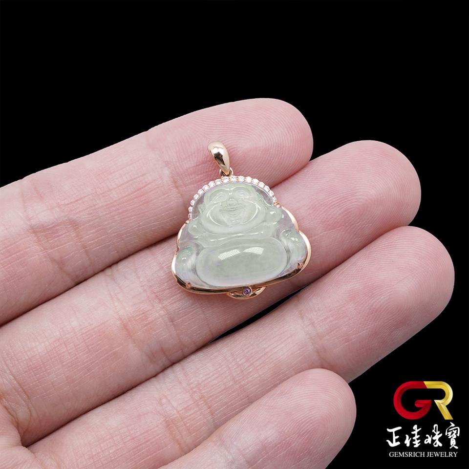 翡翠 冰玻璃種大肚佛吊墜 4.3g 彌勒佛吊墜 天然A貨翡翠吊墜|18K金鑽石鑲嵌台