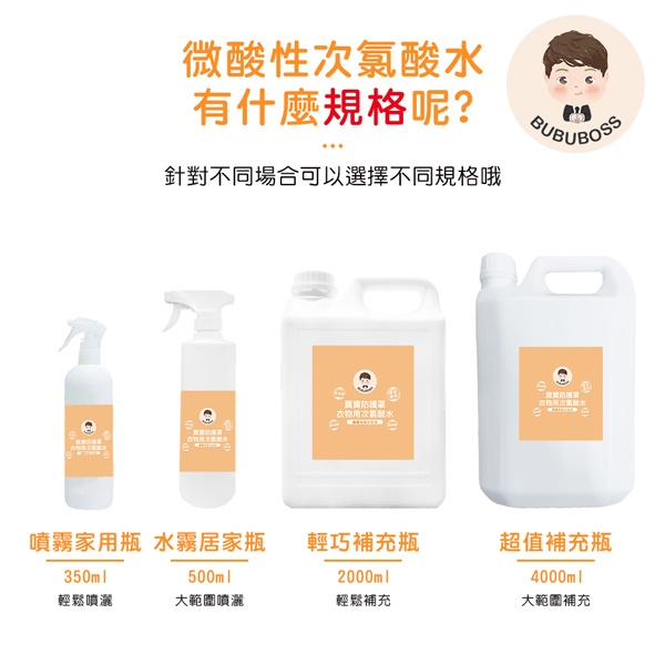 BUBUBOSS-寶寶防護罩-衣物用次氯酸水-超值補充瓶-規格說明: