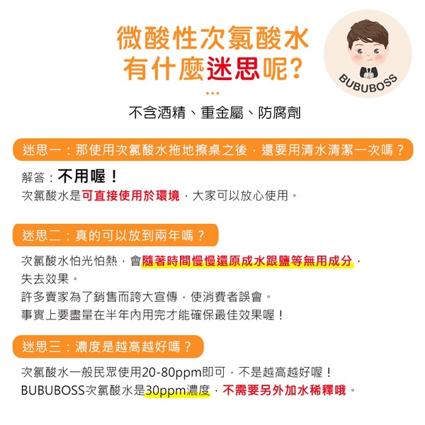 BUBUBOSS-寶寶防護罩-衣物用次氯酸水-超值補充瓶-迷思破解