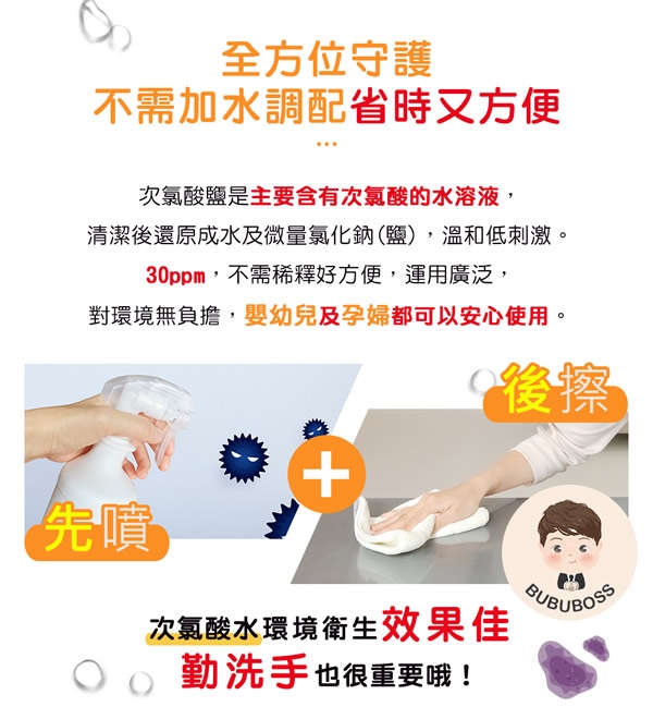 請別忘了寶寶界的法寶「BUBUBOSS次氯酸水」噴一噴哦!