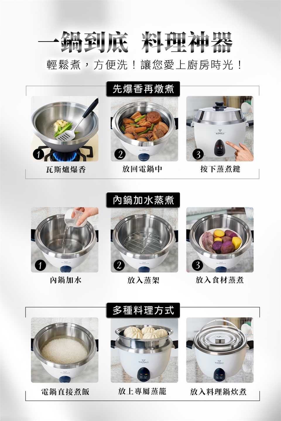 特別的是厲害電鍋304內鍋也可直接烹煮。