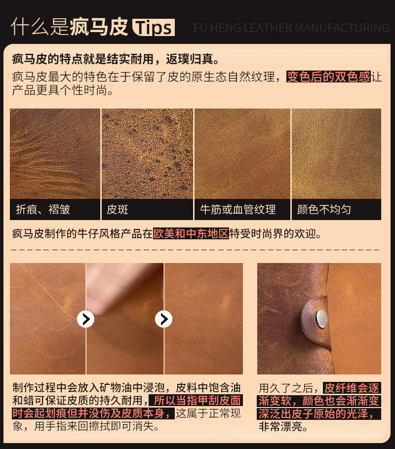 【材質】:深棕色為瘋馬牛皮 ( 瘋馬皮會有劃痕,是一種復古皮料,介意者慎拍! )