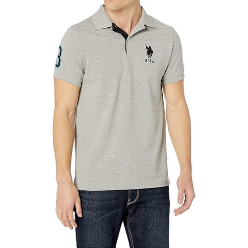 【US POLO】2023男時尚大馬球標誌合身灰色短袖POLO