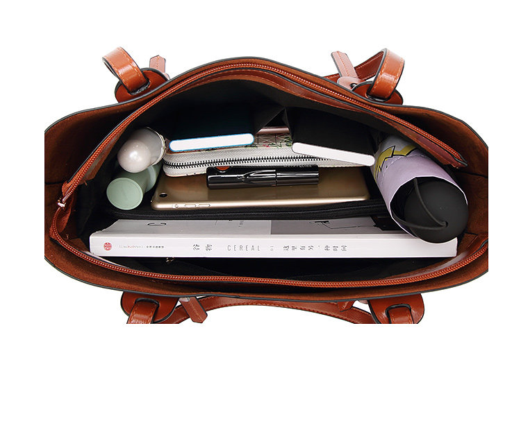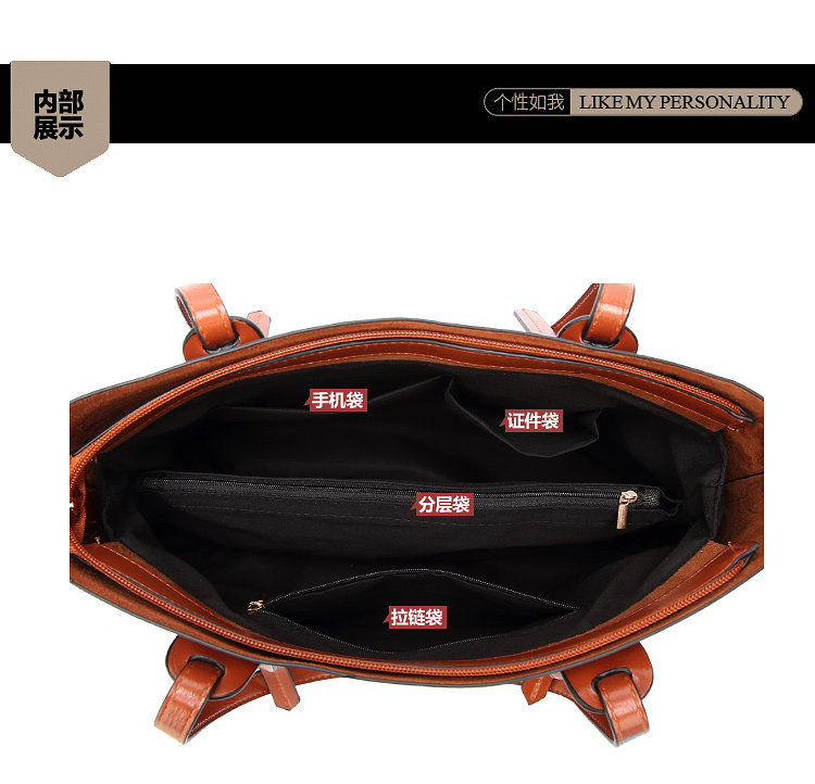 軟皮包 ,中間設計有大隔層拉鏈袋,包身背面設計有個大插袋