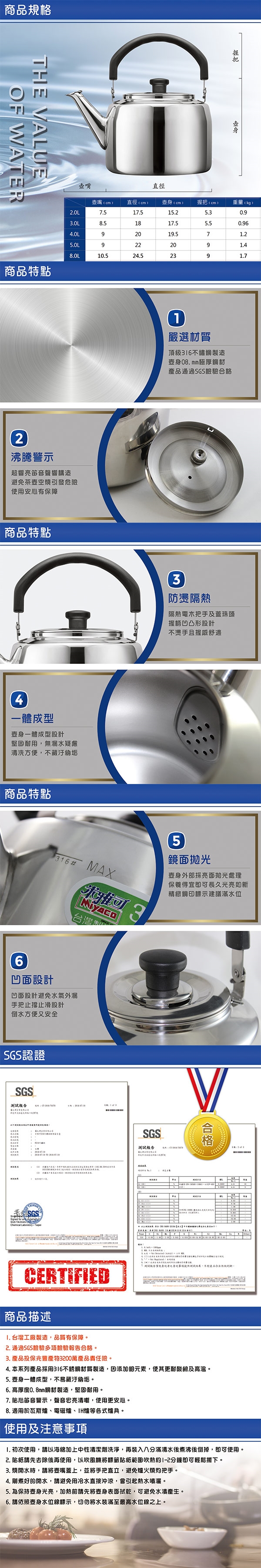 保存方法:商品使用完敬請擦乾並保存於乾燥處,避免與強酸、鹼性溶劑共同存放。