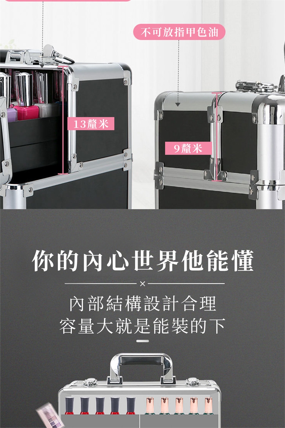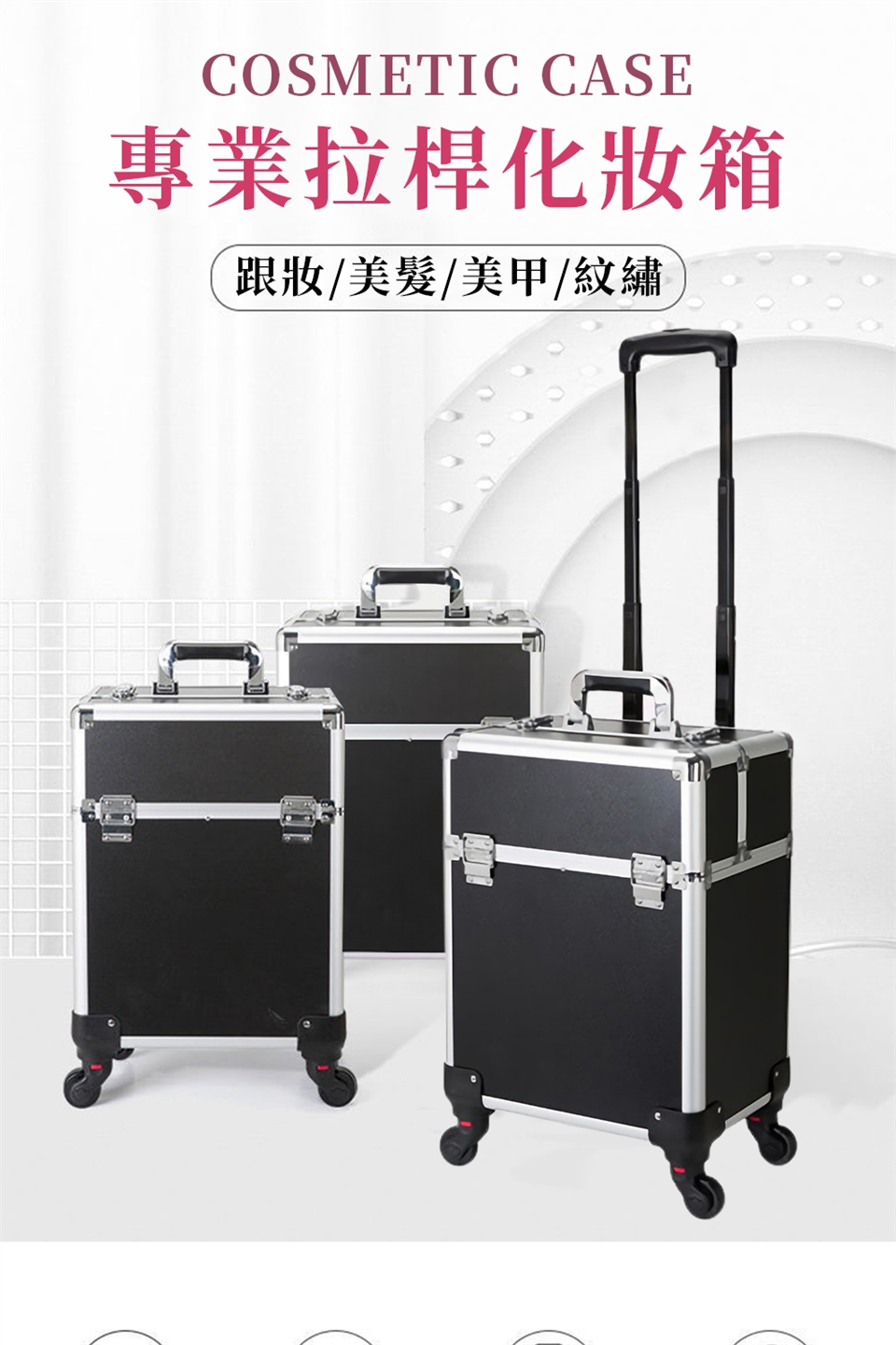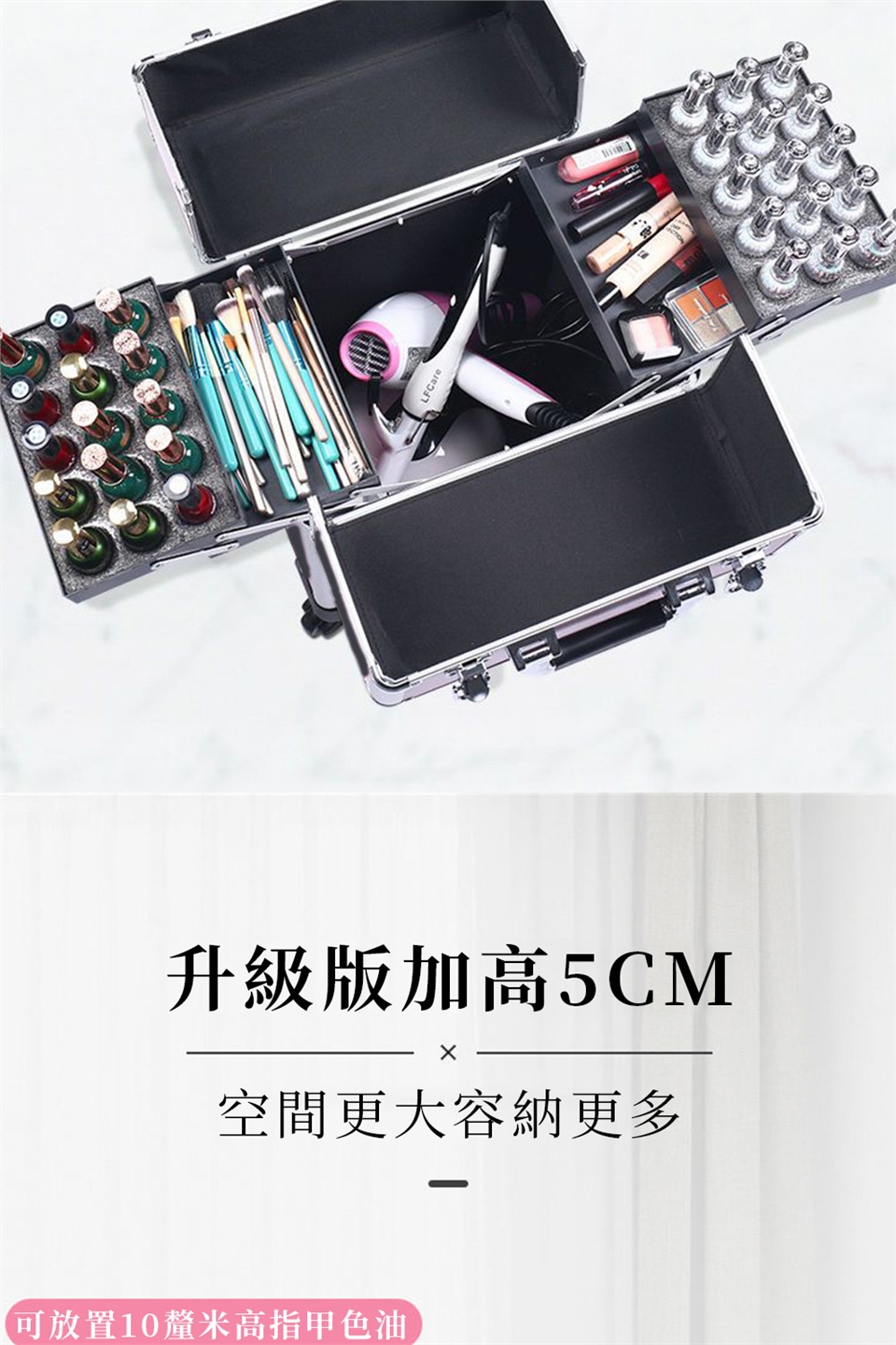 -彩妝/美容/美甲/紋綉/新秘專用出差登機箱,多層結構、超大底倉、可調整隔板,注塑托盤