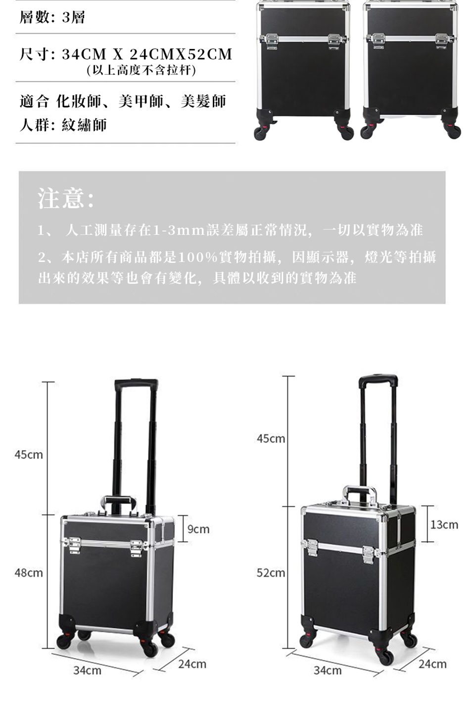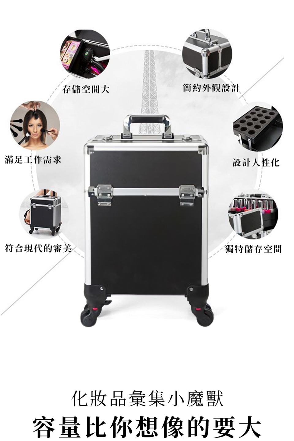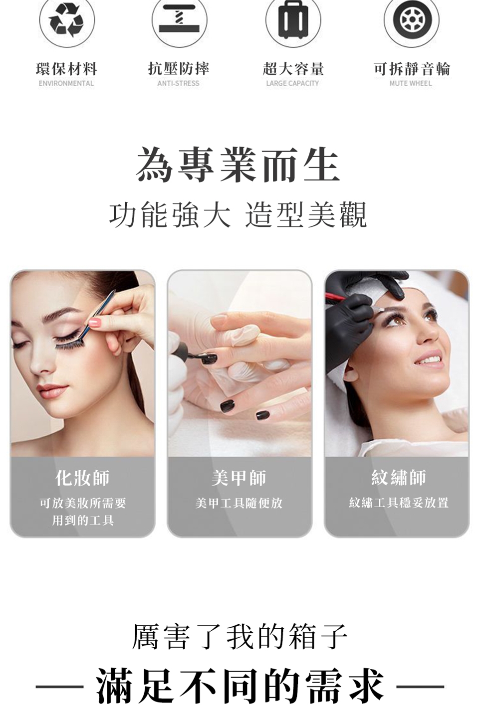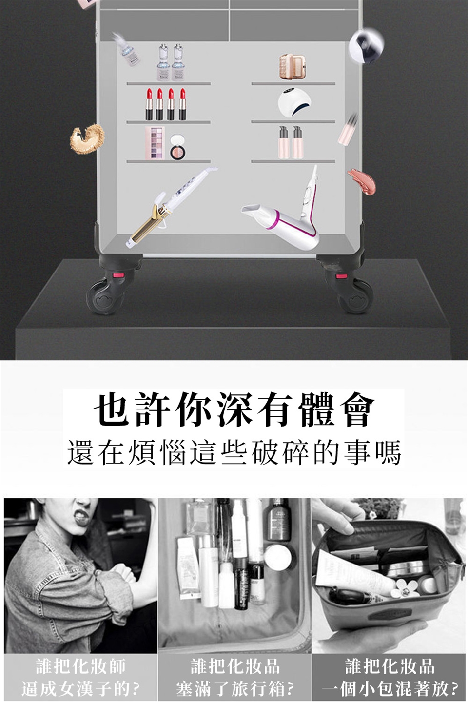 -彩妝/美容/美甲/紋綉/新秘專用出差登機箱,多層結構、超大底倉、可調整隔板,注塑托盤