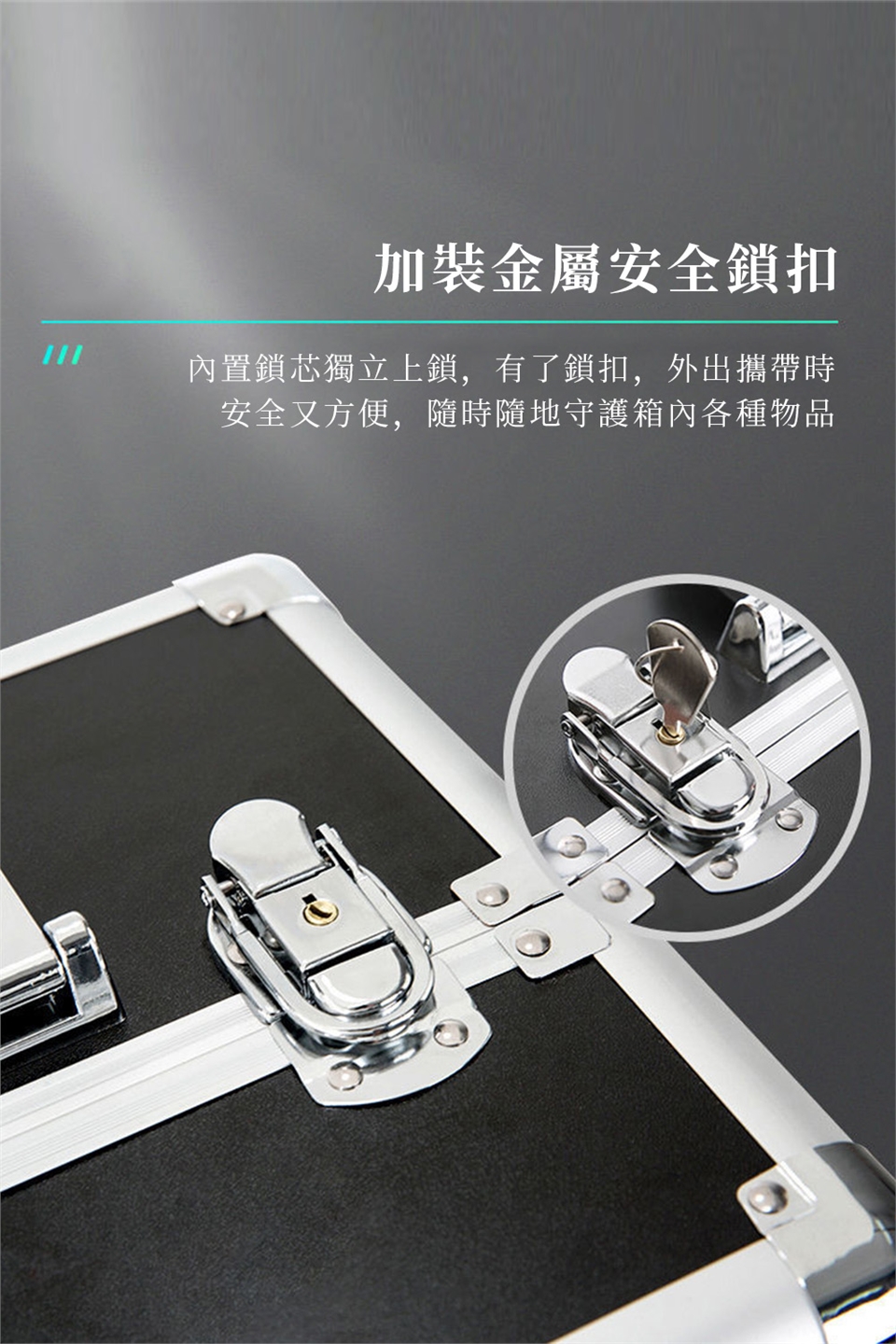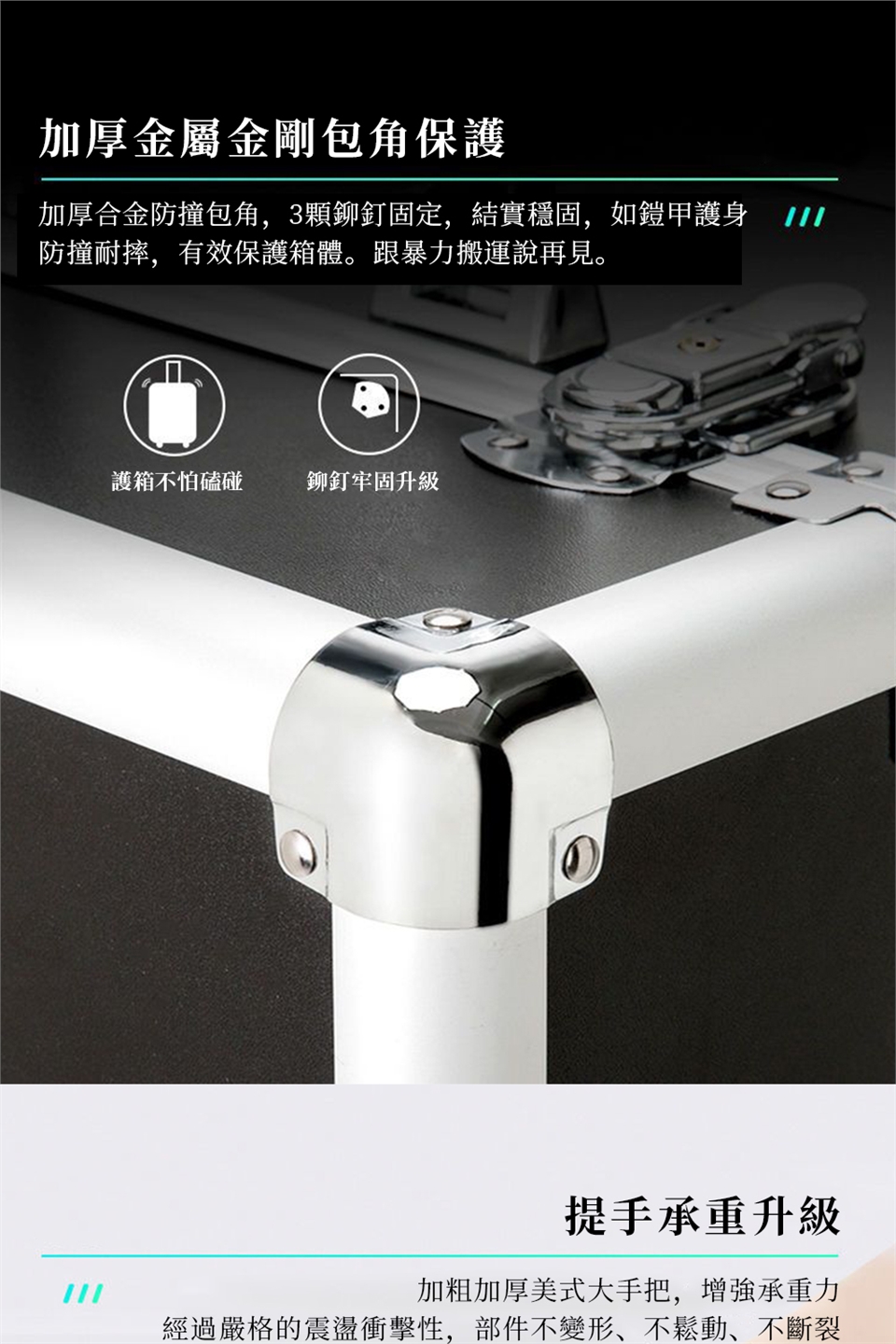 -鑰匙固定鎖、鋁合金拉桿,輕巧、堅固、耐用,細咬花紋理,耐磨防刮