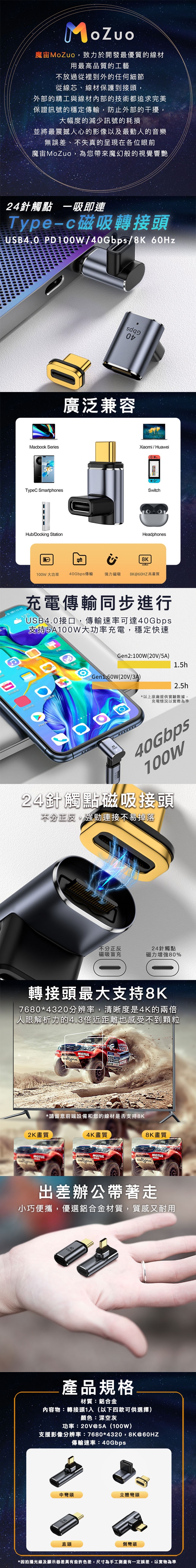 ◆ 24針觸點磁吸接頭,強勁連接不掉落